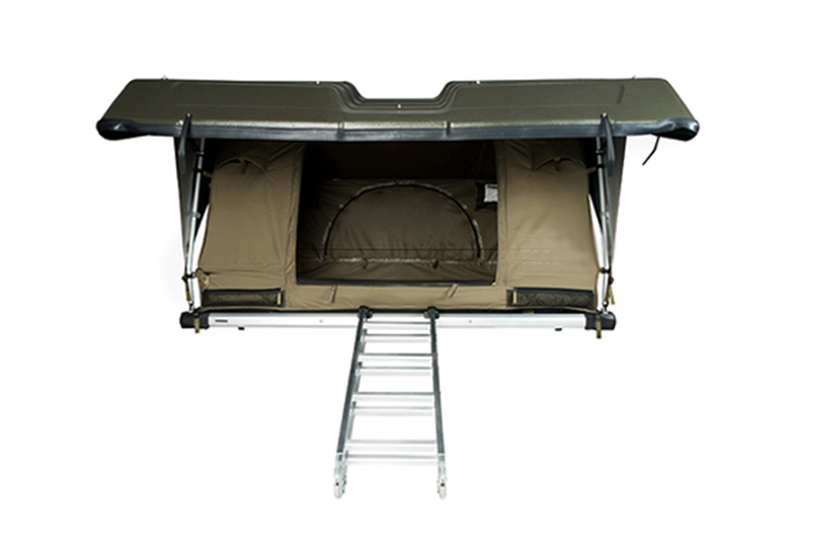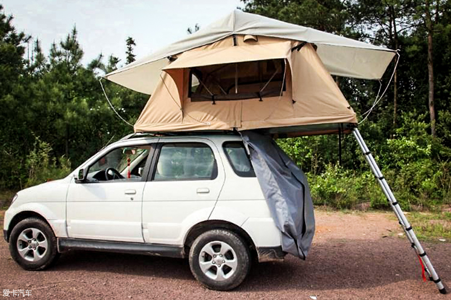 这种帐篷在折叠起来的时候只是一个方方的盒子,但打开以后却可以有惊人的效果。从帐篷上面会有一个梯子延伸下来,方便人们进出帐篷车用帐篷。